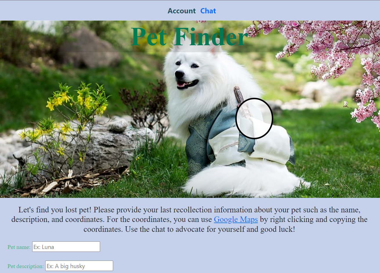 For my project, I created a website where you can find your lost pets with an additional feature of Javascript instead of just HTML, CSS, and Github. I chose to create a website because I was familiar with it and I like advocation through creativity and not just verbally.